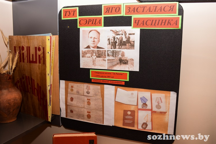 Даниил Андреевич, который также является руководителем школьного музея, рассказал нам об экспонатах, которые хранят память о малой родине тех семей, что в свое время переехали из отселенных после аварии на ЧАЭС деревень.