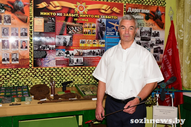— Приступив к работе в качестве руководителя по военно-патриотическому воспитанию, я знакомился с опытом коллег, видел интересные музеи в Зябровской, Приборской и других школах района. При этом было немного обидно: «Почему у нас нет такого?» Ведь и в Терешковичском сельсовете много своих героев, которыми мы гордимся. Так пришла идея создания собственной музейной экспозиции, — рассказывает Дмитрий Анатольевич. Небольшой архив сохранился в Терешковичской средней школе от старого музея, действовавшего в советское время: воспоминания ветеранов, фотографии, письма. С просьбой помочь собрать портреты прадедов — участников войны — педагог обратился к учащимся.