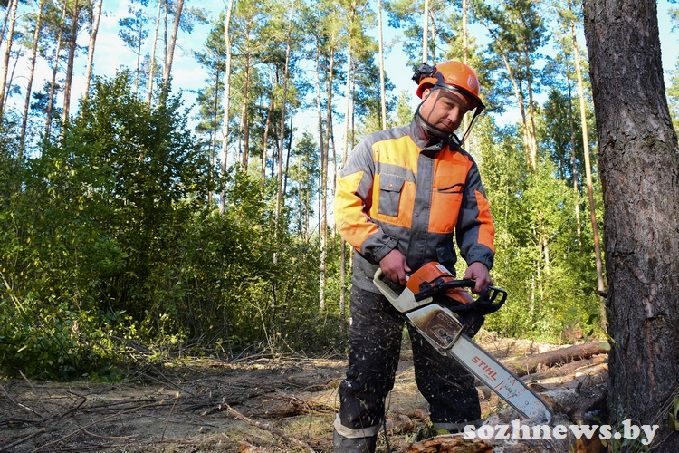 — Работаю в Коренёвской лесной базе уже почти 15 лет. Условия труда, конечно, непростые: в любых погодных условиях, в зной и холод выполняем поставленную задачу. Леса у нас смешанные, много старых деревьев, которые были посажены еще при князе Паскевиче. Иногда приходится спиливать дерево и с метровым диаметром. Это сложно, но тем интереснее работа, — рассказывает Роман Ушков.