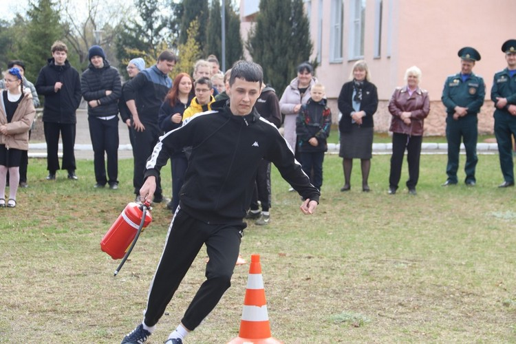 А следующей точкой на карте мероприятий стал школьный стадион. Спасатели подготовили для активистов БМООСП тематическую спортивную эстафету, а в роли судей выступили уважаемые ветераны ОПЧС.