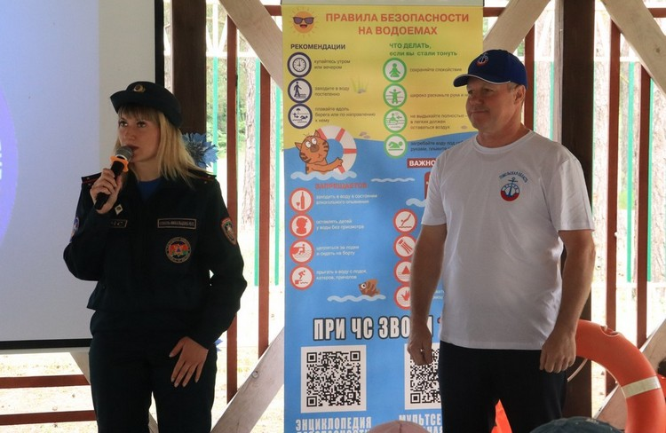 Игорь Корбут, председатель районной организации ОСВОД, рассказывает о правилах безопасного купания: использование спасательных средств, правильное поведение на воде. Все участники мероприятий получают памятки и полезные подарки от МЧС. Просмотр мультфильма «Волшебная книга» помогает закрепить знания о безопасном поведении у водоёмов.