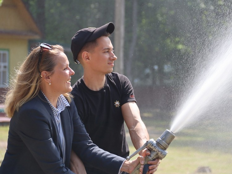 Не меньше эмоций у детей вызывает и пожарная техника. Ребята с большим удовольствием изучают её, примеряют боевую одежду спасателей и снаряжение, с которым на пожарах работают огнеборцы, а также «тушат» условный пожар с настоящего пожарного ствола.