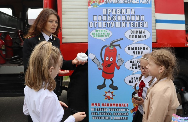 Специалист Белорусского добровольного пожарного общества Вера Уздовская рассказала детишкам для чего нужен АПИ, а с помощью яркого ролл-апа объяснила, как правильно пользоваться огнетушителем.