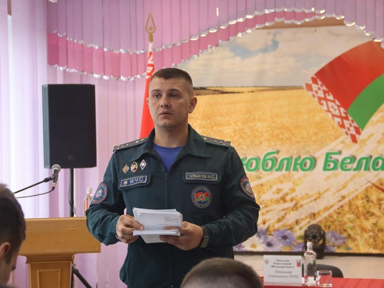 Андрей Петрович, старший инспектор по особым поручениям сектора собственной безопасности Гомельского областного управления МЧС довёл до присутствующих обзор о состоянии законности и дисциплины в органах и подразделениях по ЧС, рассказал о произошедших чрезвычайных происшествиях среди личного состава подразделений МЧС.